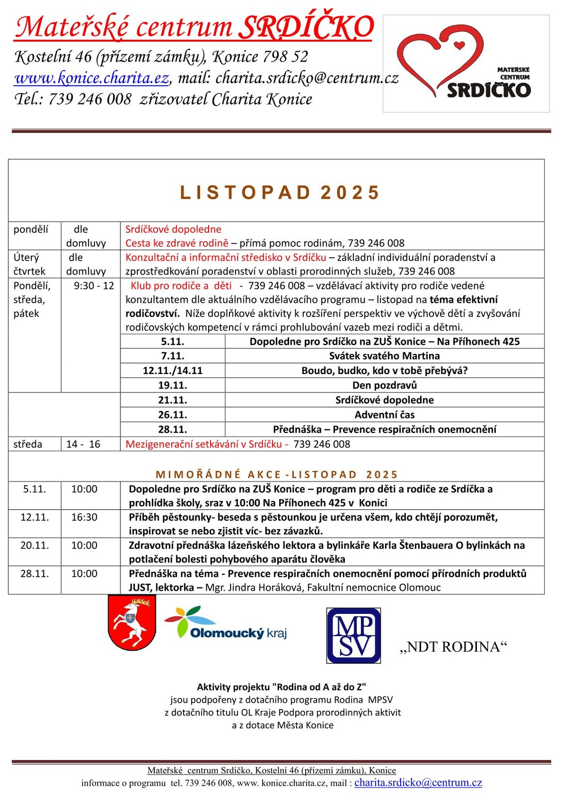Program MC Srdíčko listopad 2025